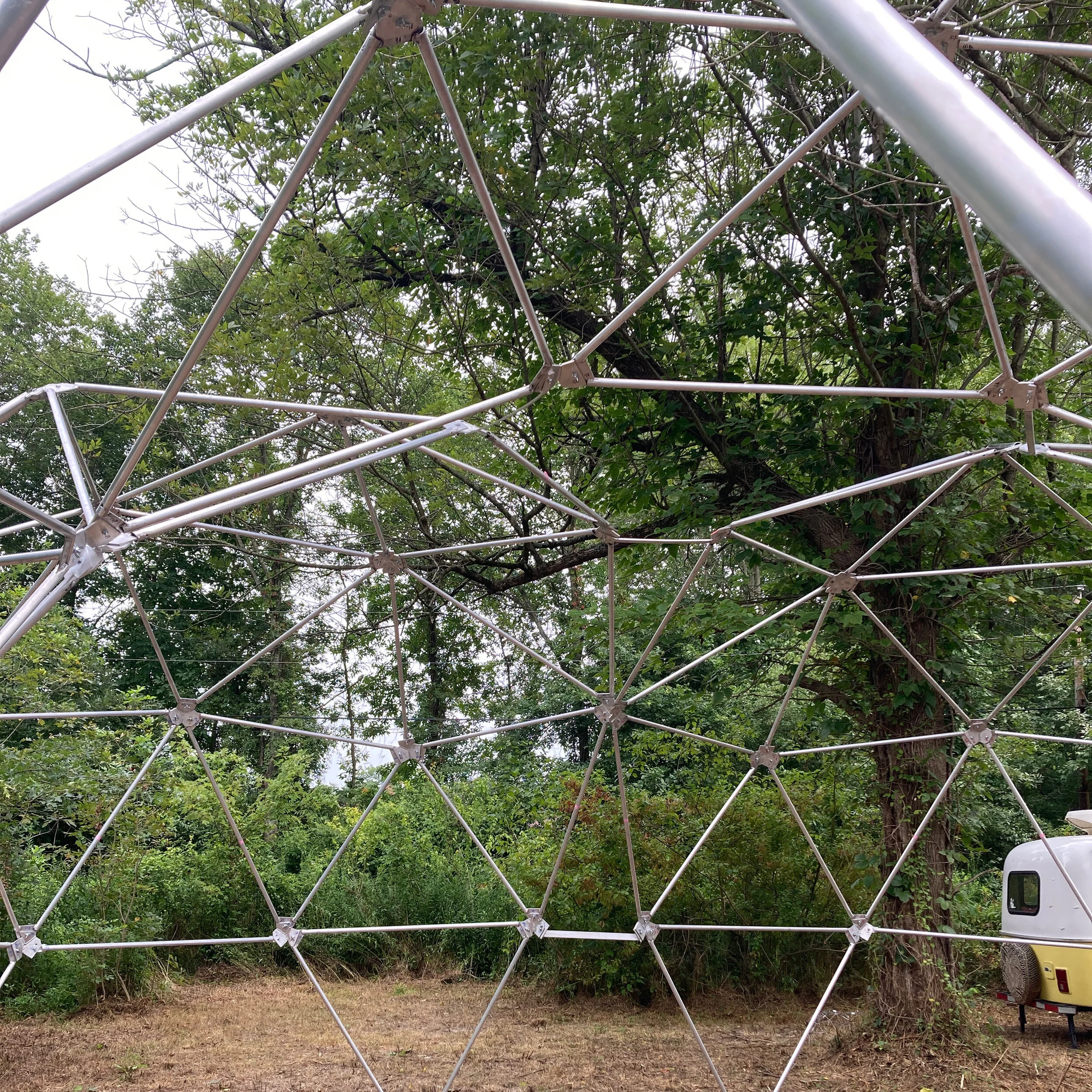 These three interconnected geodesic domes were designed and constructed to go on tour as the set/performance space for dance performances.